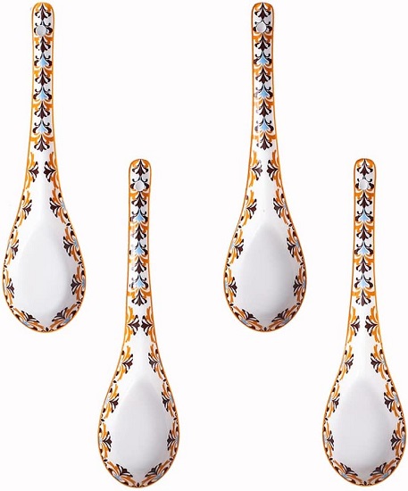 Colorful Bohemian style Asian Porcelain Soup/Appetizer Spoon, made of Durable Vitrified Porcelain. The spoon can be used in everyday dining or restaurants, food shops, catering halls, etc.
