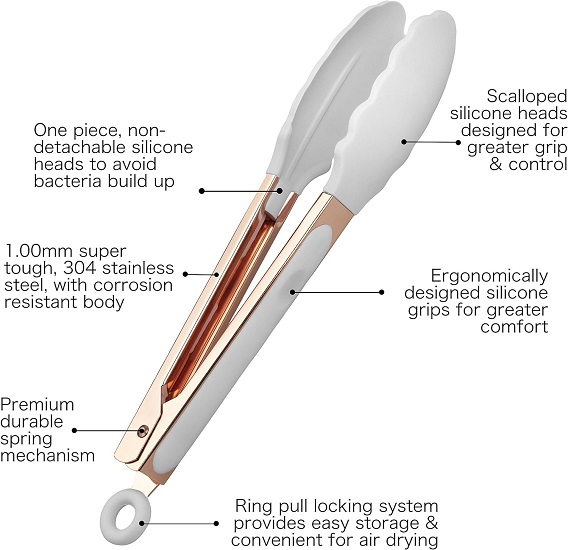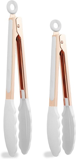 Let the grilling begin with these high performance, trendy food tongs,set includes a 9” tong and 12” tong to accommodate your various cooking needs, Soft nonslip good grip handles and scalloped silicone heads assures you have complete control while cooking.