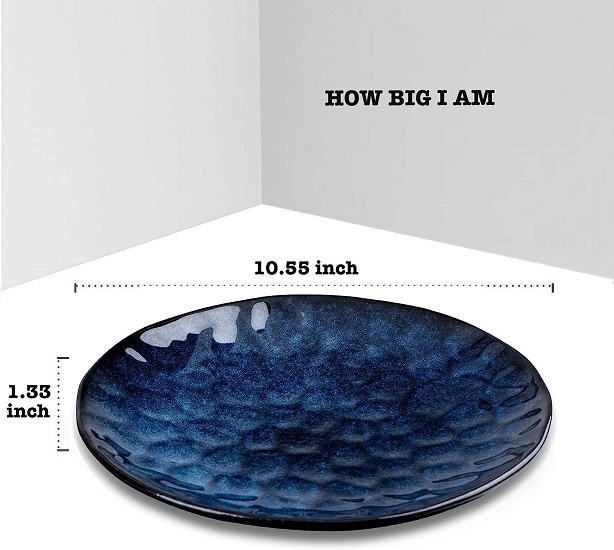 Perfect Size for Multi-Purpose - Each plate measures 10.5 inches. These porcelain plates are suitable size for the main dessert, snacks, steak, bread, Risotto, Fluffiest Pancakesand, appetizer. They fit a nice full meal and leave room on the sides so that food/liquid doesn't overflow.
